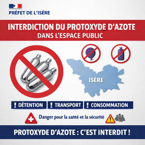 Par arrêté préfectoral du 15 janvier, la préfète de Isère, Catherine Séguin, interdit la détention, le transport et la consommation de protoxyde d’azote sur la voie publique dans tout le département.